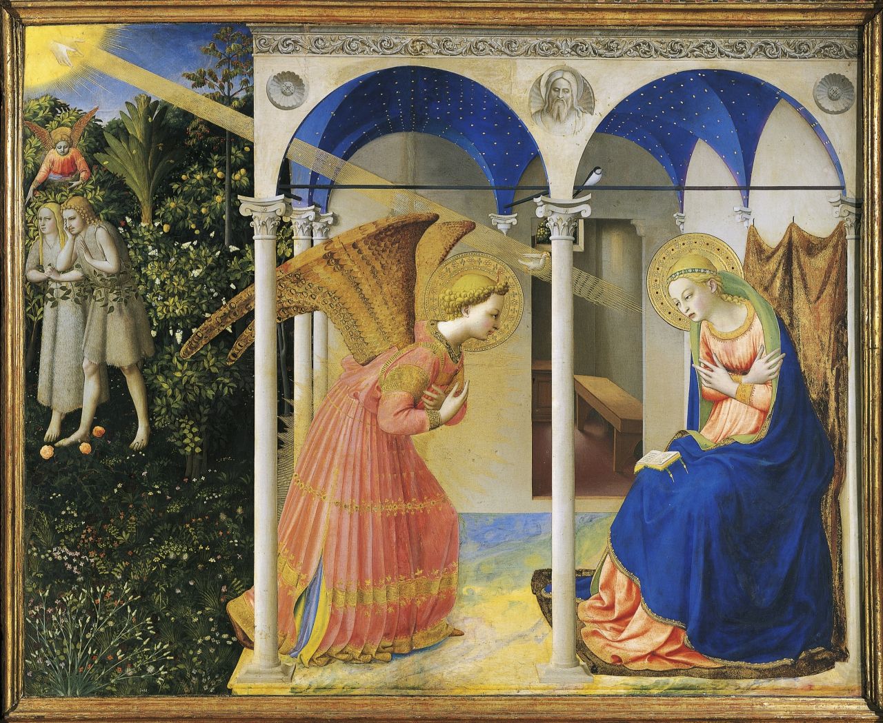 프라 안젤리코의 그림에서 아담과 하와를 추방하고 있는 천사와 마리아에게 성령으로 잉태할 것임을 고지하는 천사는 동일하게 가브리엘 천사이다.